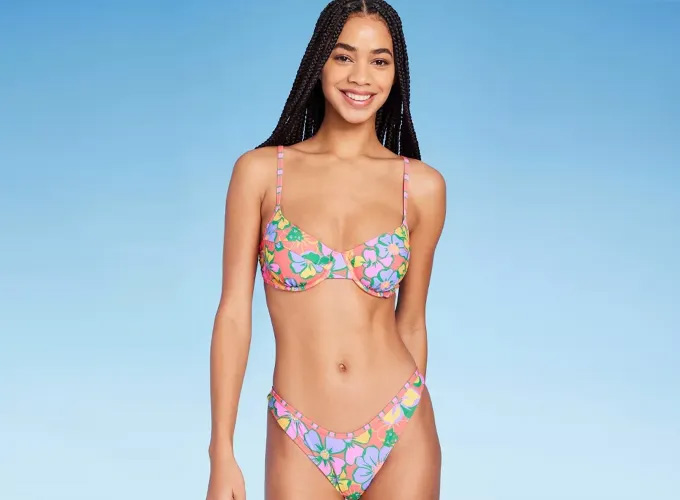 Women’s Floral Print Side-Tie Ultra High Leg Adjustable Coverage Bikini Bottom – Wild Fable⢠White