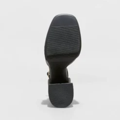 Faux-leather pumps from Wild Fable⢠set on a four-inch platform heel with a textured outsole. Designed with a round closed-toe vamp and covered heel with a wrap-around buckle strap. Memory foam insoles provide all-day comfort.