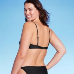 Mini bralette bikini top from Wild Fableā¢Ā in black. Low-coverage design made from soft fabric with spandex for stretchy comfort and a flattering look. Removable cups offer customizable coverage. Adjustable straps and back hook closure provide the perfect stay-put fit.