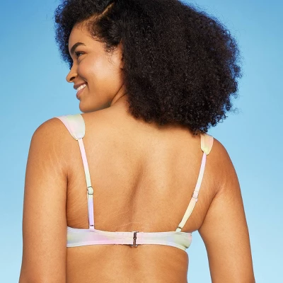 Underwire bikini top from Wild Fable⢠with a mesh overlay and a seamless swirl print in soft colors. Made from soft fabric with four-way stretch and full lining for flexible comfort in and out of the water. Removable cups offer customizable coverage. Adjustable shoulder straps and a back strap with hook fastening complete the look and provide a secure fit.