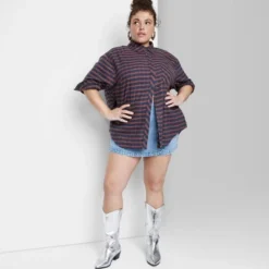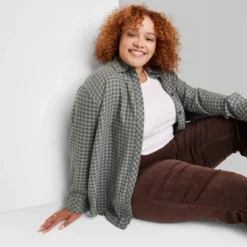 Long-sleeve oversized flannel shirt from Wild Fable⢠made from cotton and recycled polyester for comfortable wear. Designed in a below-waist length with collared neckline and full front button-down closure. Two front pockets and back yoke complete the classic look.