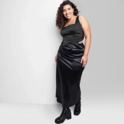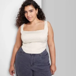 Satin corset tank top from Wild Fable⢠in a solid hue embellished with sparkly rhinestones. Features a square neckline with adjustable shoulder straps and a curved hem on the front. Tailored in a slim-fit silhouette and made from midweight, stretchy recycled polyester with lining for comfortable wear. Pullover style and a smocked back panel complete the look.