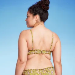 Bralette bikini top from Wild Fable⢠adorned with ruffle edging. Made of soft, stretchy fabric and comes with removable cups. Adjustable straps and back hook-and-loop fastener help you find a secure fit.
