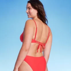 Bralette bikini top from Wild Fable⢠in a solid hue. Made from soft fabric with spandex and full lining for stretchy comfort in and out of the water. Designed with a square neck and opaque construction. Removable cups offer customizable coverage. Back tie provides a snug, stay-put fit.