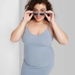 Solid-color knit bodycon dress from Wild Fable⢠with a V-front neckline and square back. Made from lightweight cotton with spandex for comfortable wear that moves with you. Sleeveless design with slender, adjustable straps. Mini-length silhouette and pullover style complete the look.